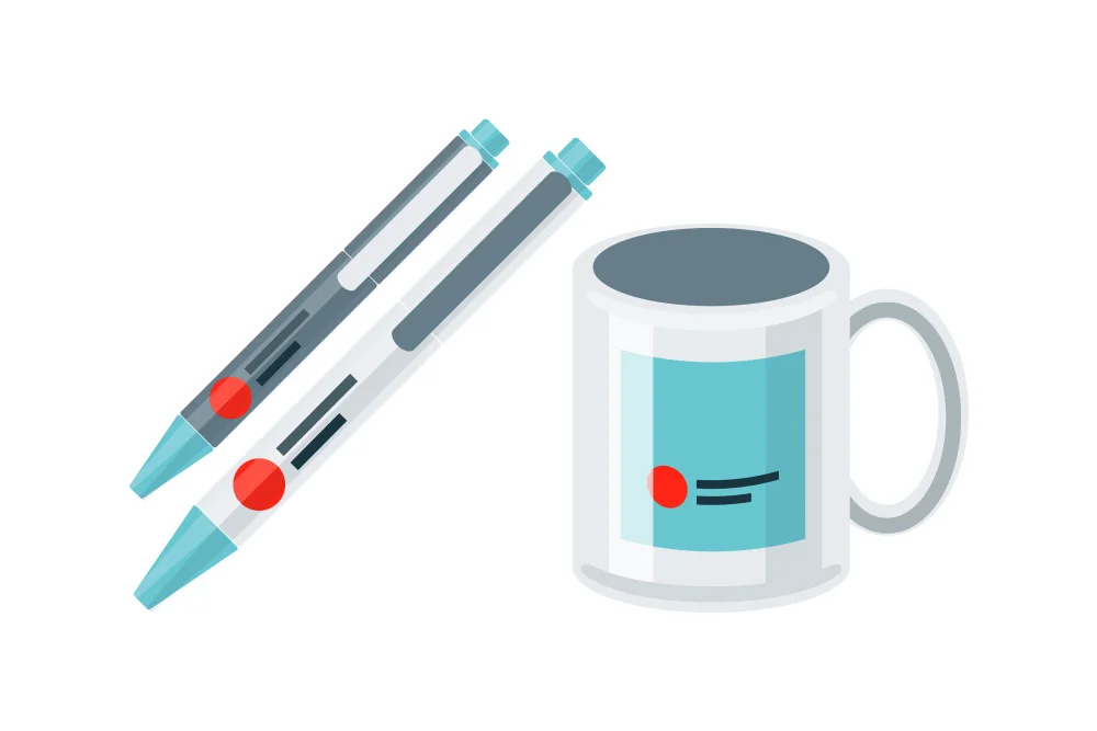 Objets publicitarios: bolígrafos, tazas, agendas, bolsas… todo con tu logo.